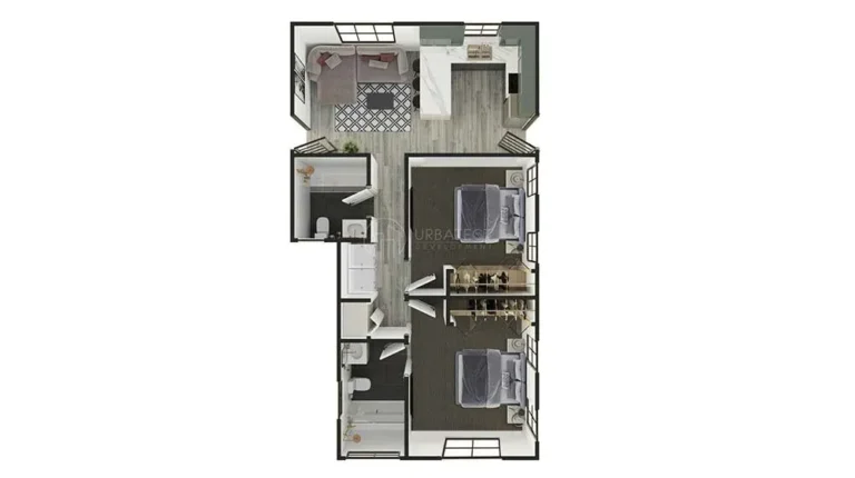 Spacious living in 792 sqft 2-bedroom, 2-bathroom ADU model, featuring a dedicated dining room that enhances the functionality and comfort of this modern living space.