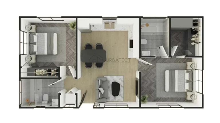 Experience spacious comfort in our 800 sqft, 2-bedroom, 2-bathroom ADU, featuring an inviting entry porch and a wide-open kitchen/living area—perfect for both relaxation and entertaining.